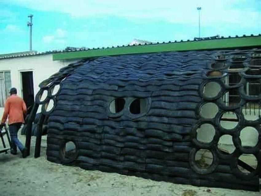 Автомобильные покрышки — отличная идея для создания кровли дома, следующий пример тому явное подтверждение.