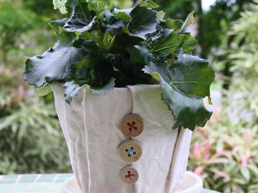 Декорирование цветочных горшков с помощью ткани позволяет создать удивительно красивые элементы интерьера. Лен и мешковина органично впишутся в стилистику стиля «кантри», а шелк и органза подойдут для романтического стиля.