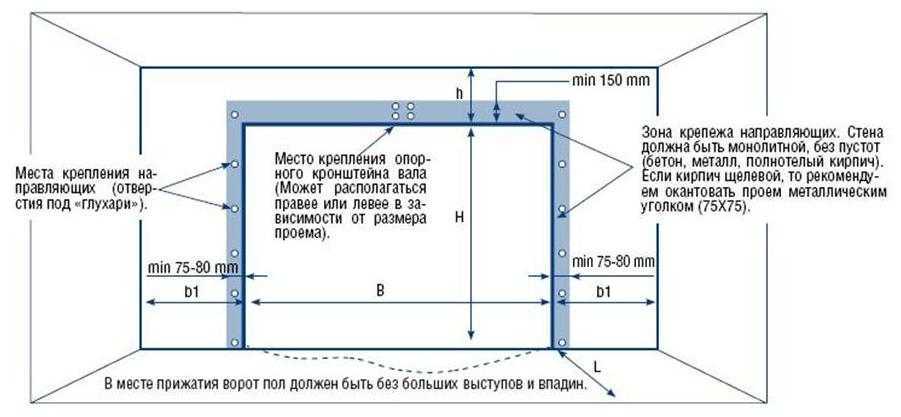Если стены, к которым будут крепится секционные ворота, сложены из полнотелого кирпича, бетона, шлакоблока, даже ракушняка, крепление направляющих возможно. Для этих материалов обычно используют анкера или дюбеля. Хуже, если стены сложены из пустотелого щелевого кирпича, пеноблока. В них тяжелую конструкцию без доработки не поставишь. Придется делать усиление проема. Есть два способа:
