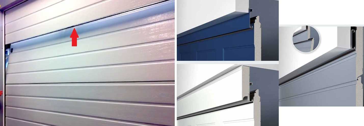 Бывает и так, что вверху или по бокам не хватает места для установки конструкции. Если слишком мала притолока, есть штатное решение — фальшпанель. Она сделана из того же материала, что и полотно ворот, крепится в проеме к несущей балке. Тем самым уменьшается высота ворот, но появляется возможность установить более удобную в монтаже систему стандартного подъема.