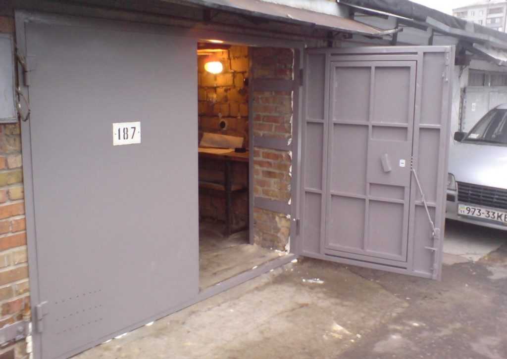 - В готовом гараже изготавливают створки по габаритам проема, устанавливают раму и крепят полотна.