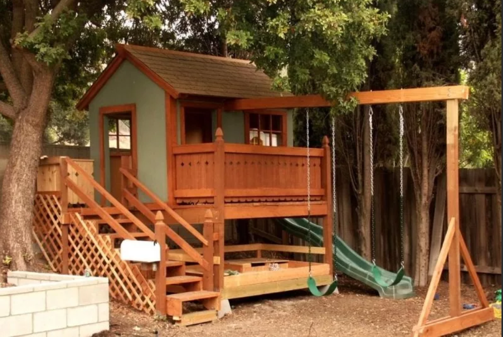 Деревянные привлекают доступностью материалов и относительной простотой изготовления, для которого не нужно сложное оборудование: можно обойтись самым простым ручным инструментом – ножовкой, отверткой, молотком, наждачной бумагой. Дерево приятно на ощупь и легко поддается таким видам обработки, как выпиливание или резьба, что позволит украсить горку интересными деталями. Но оно требует защиты от влаги и прочих разрушающих природных факторов, как в процессе изготовления, так и во время эксплуатации. А также регулярного обновления декоративного покрытия, замены потерявших прочность деталей и подтягивания крепежа.