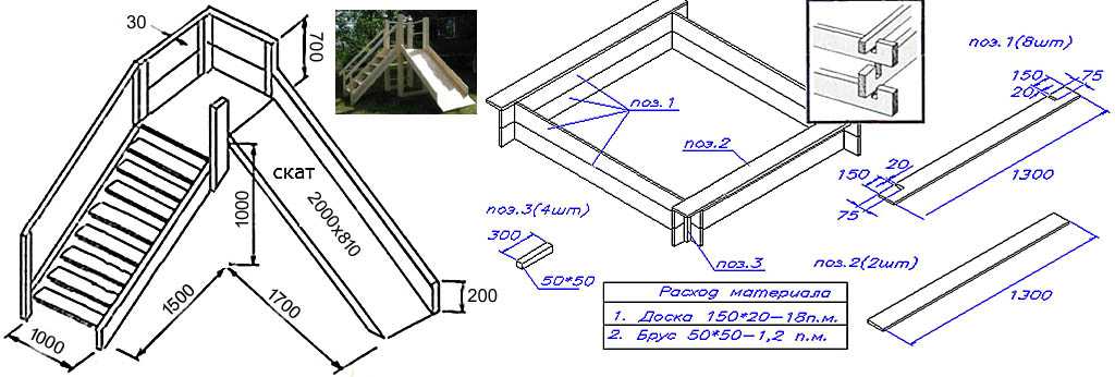 Схема устройства деревянной горки для малышей