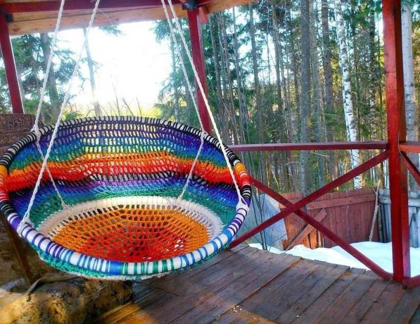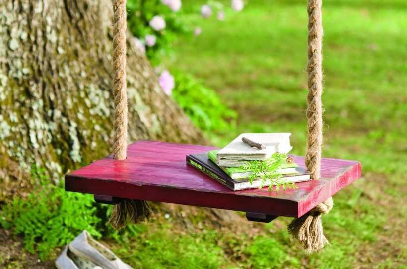 Если качели являются подвесными, то в качестве сидения можно использовать плетеную сетку или прямоугольную платформу. Еще один старый трюк – подвешивание автомобильной покрышки на дерево.