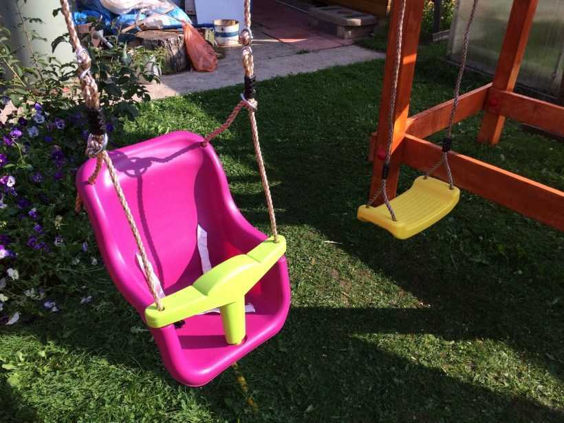 Гораздо меньшей опасностью отличаются сиденья в виде резиновых или кожаных ремней, подвешенные посредством полипропиленовых канатов или металлических цепей. Это очень легкие и практически лишенные острых углов конструкции.