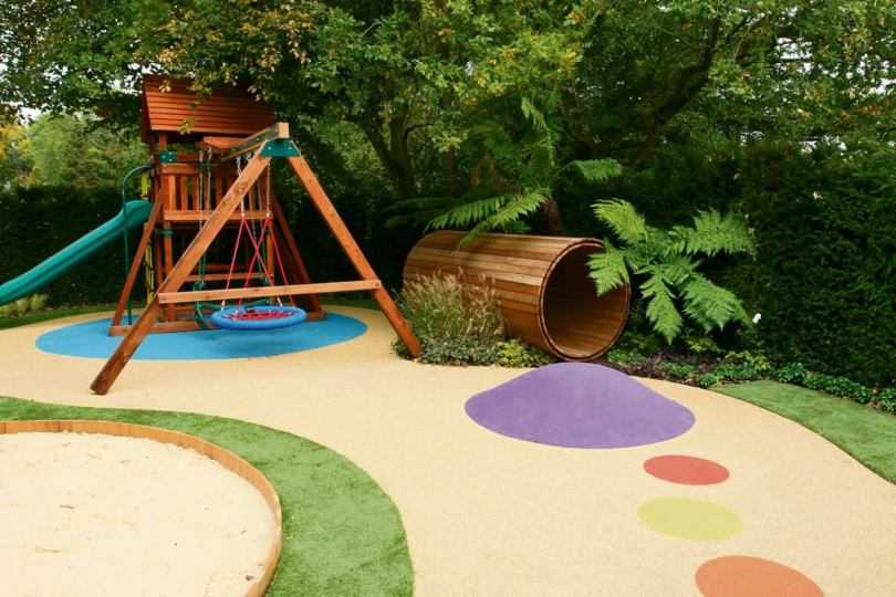 - игровая зона должна быть на удалении от овощных посадок, теплиц, колючих кустарников, а также от коммуникаций;