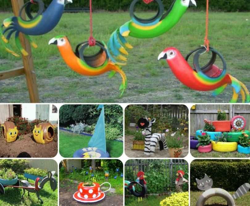Для малышей не нужно устанавливать сложные детские площадки, для них достаточно соорудить следующие поделки: