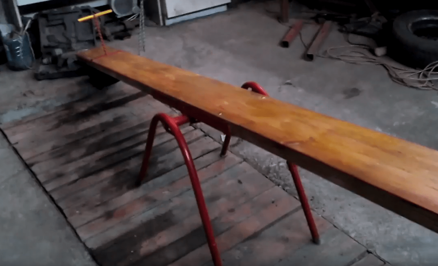 Давайте изготовим качели балансир своими руками из дерева. В качестве каркаса используем металл, а для перекладины возьмем доску из строганого бруса.