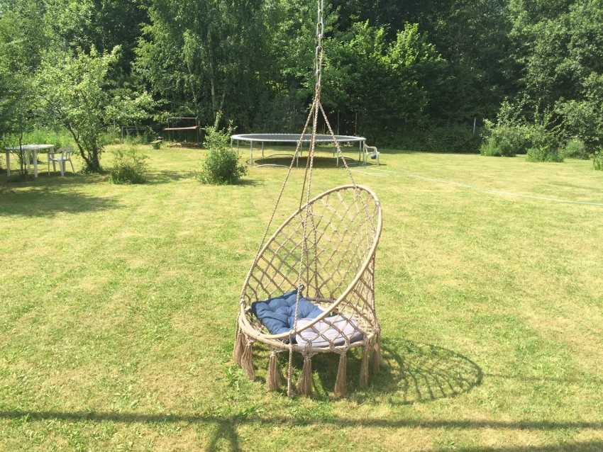 Также стоит продумать качественный подвес, который выдержит не только сидушку, но и человека. В качестве гибких подвесов применяются цепи, альпинистские веревки, металлические тросы и даже ремни. Жесткие варианты выполняются из металла или дерева.
