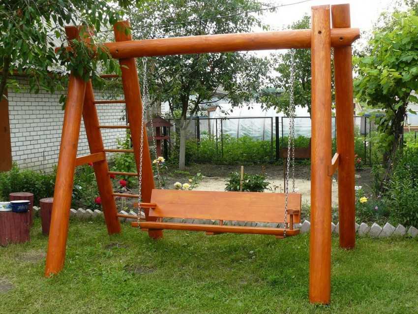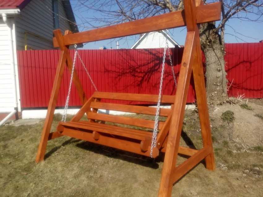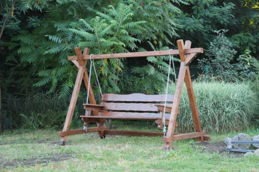 - дерево служит меньше, но стоит дешевле – из такого материала можно построить не менее добротные каркасные качели;
