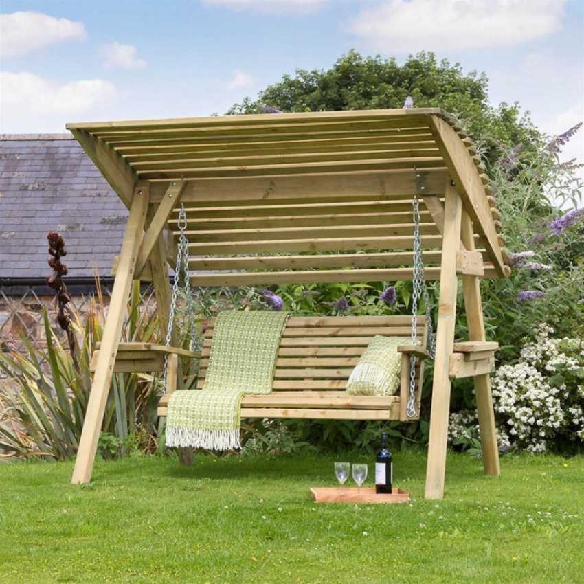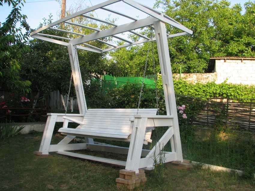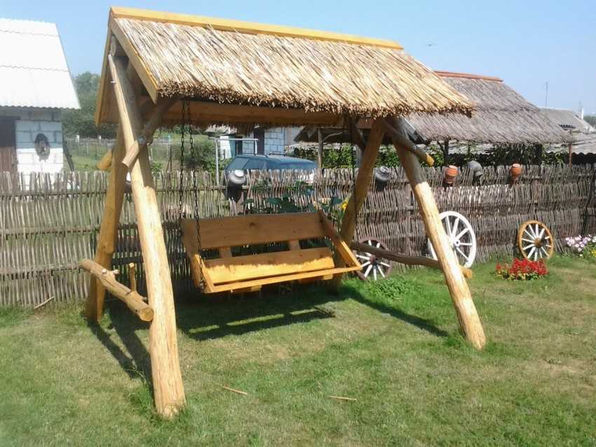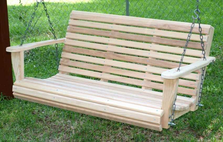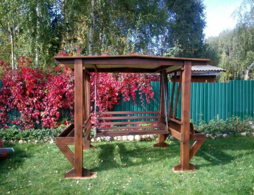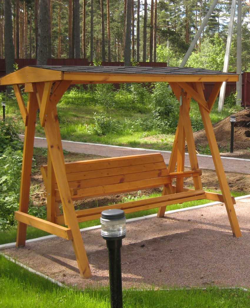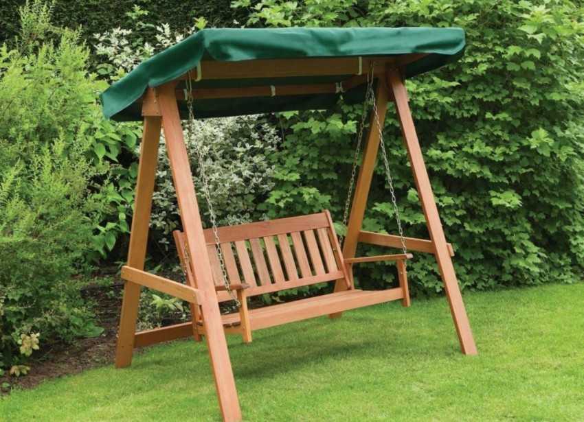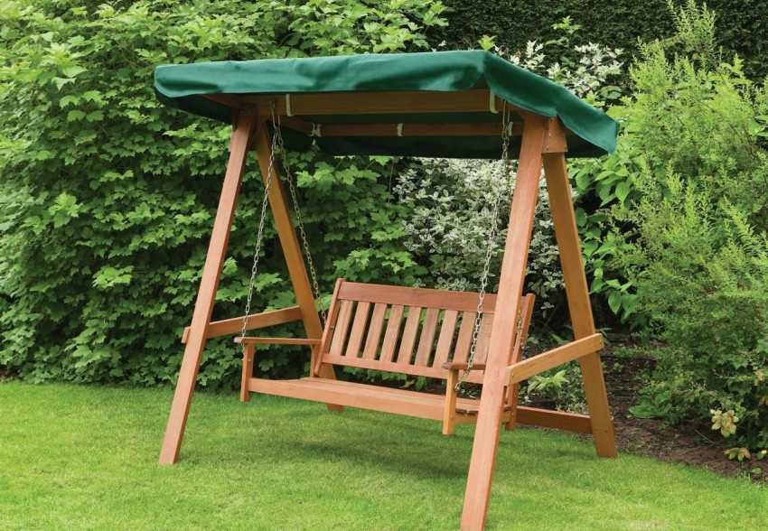 Главное отличие скамеек и беседок заключается в уровне комфорта. В первом случае сиденье для качелей производится из дерева, во втором — из подходящих тканей. Выбор зависит от личных предпочтений и назначения конструкции.