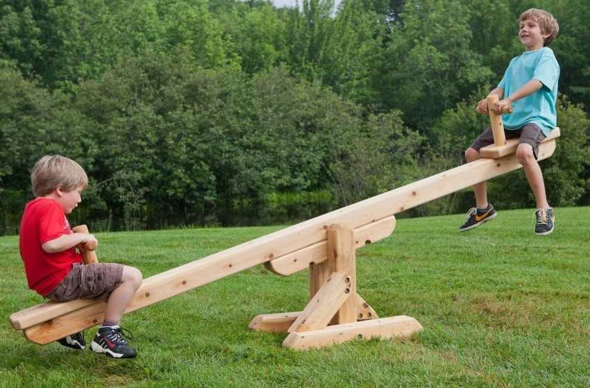 Балансиры представляют собой агрегаты для одновременного использования двумя и более малышами. Они имеют опору посередине. Такие изделия установлены на большинстве общественных детских площадок. Кроме того, такие качели просты для самостоятельного изготовления на собственном дачном участке.
