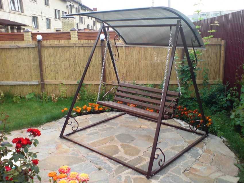 Традиционными материалами для изготовления уличных качелей для дачи своими руками являются металл и древесина. В целях улучшения надежности и внешних характеристик можно совместить данные материалы, а также частично украсить металлическую конструкцию декоративной ковкой.