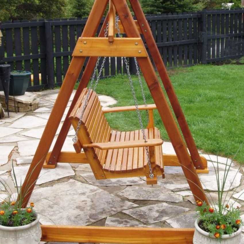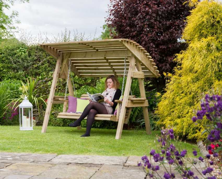 - Люлька. Лучший вариант на дачу, позволяет разместить сразу троих человек. Качели обеспечивают комфортные условия для отдыха и общения.