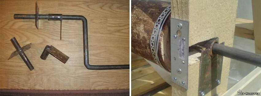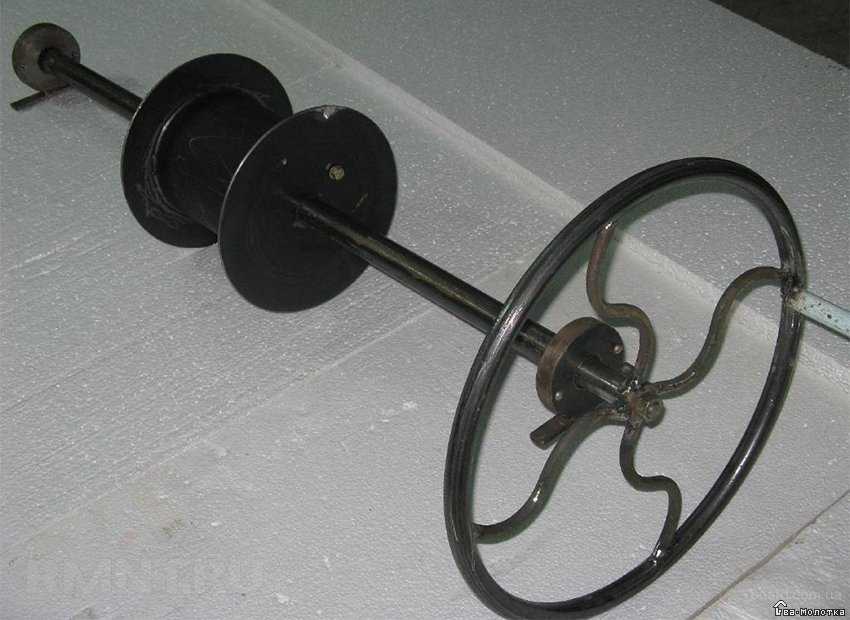 Ворот с рукояткой изготавливают из толстого, не менее 20 см в диаметре, бревна. С одной стороны в нём точно по центру вдоль оси высверливают отверстие под глухой стержень, закреплённый на опоре, а с другой — более глубокое отверстие под металлический штырь, соединённый с колесом или с изогнутой рукояткой. Торцы бревна можно усилить металлическими накладками, которые крепятся на противоположных стержнях. Бревно должно быть плотно насажено на оси.