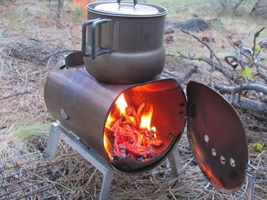 Размер буржуйки может быть самым различным, но механизм работы у всех аналогичный. В топку укладывается материал для сгорания.