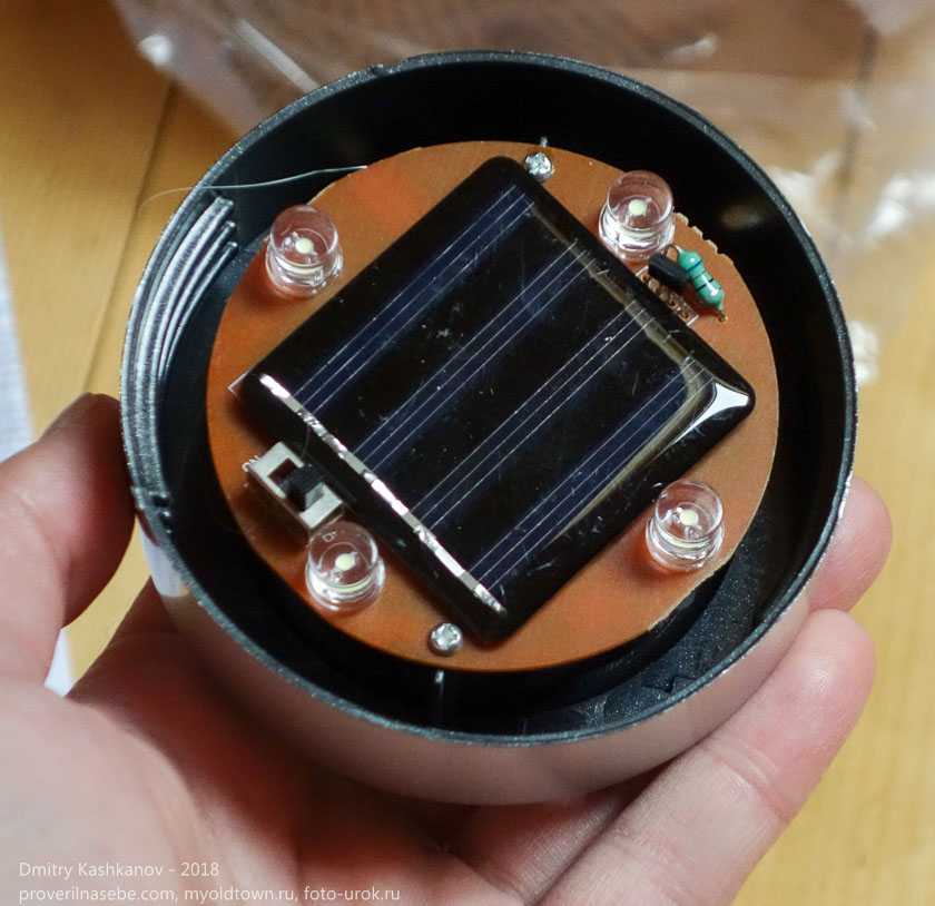 Бывают светильники с батареей на «крышке». Или солнечная батарея может быть отдельным блоком, соединенным со светильником электропроводом. Это позволяет запрятать сам светильник в заросли, а батарею оставить на освещаемом солнцем участке. Но наши конкретные изделия имели такую неудачную особенность.