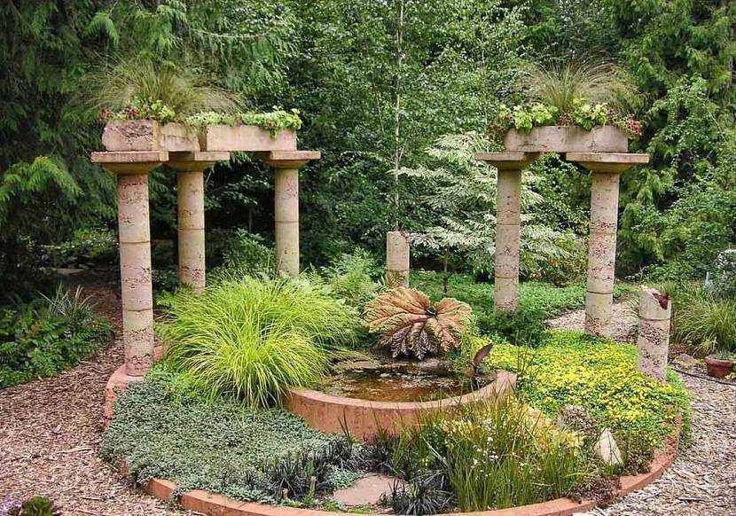 Клумба в сочетании с колонами в античном стилеИсточник in.pinterest.com