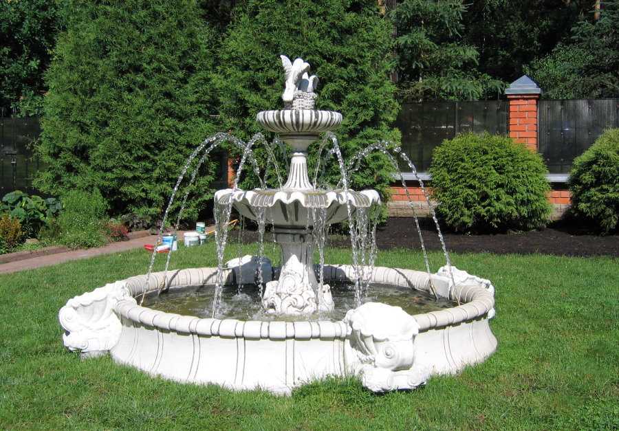 Владельцы больших участков могут позволить себе стационарные фонтаны внушительных габаритов