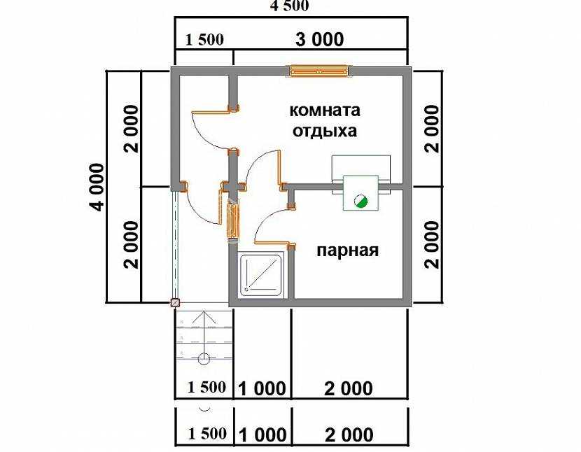 Проект бани с парилкой и душевойИсточник sk-ac.ru