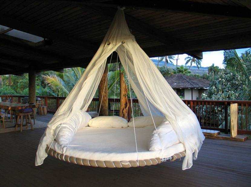 Большой гамак в виде круглой подвесной кровати можно разместить в павильонеИсточник pinterest.com