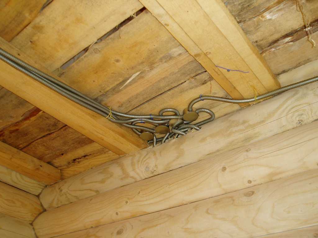 Электропровдка в деревянной бане устанавливается открытого типа, поверх стен