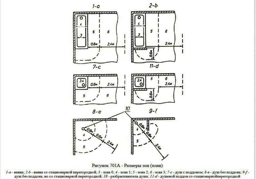 В зависимости от того, в какой зоне вы планируете устанавливать электрические приборы, выбирается степень их защиты. Электрооборудование должно иметь степень защиты от IPX7 (в зоне 0) и до IPX1 (в зоне 3). Степень защиты электрических приборов указывается на корпусе или в инструкции по применению.