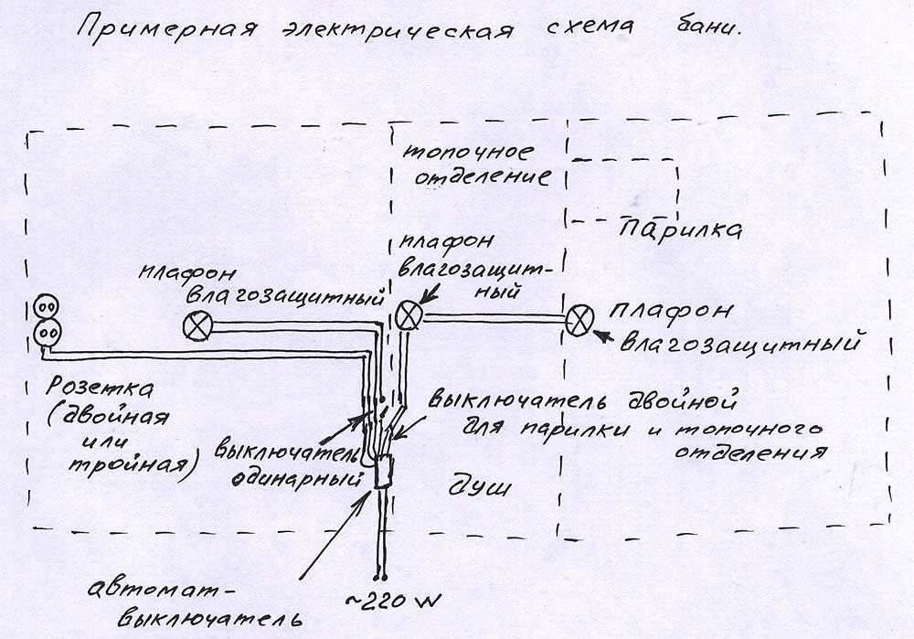 Мы уже говорили выше, что проводка в парилке отличается по ряду важных пунктов от разводки электропроводки в бане.