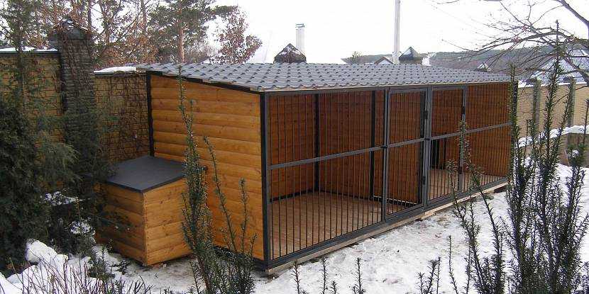 - Вольеру не должен грозить сход снега. Если на крышу внезапно упадет огромная масса с соответствующим звуком, собака получит шок. Загнать ее в вольер будет очень проблематично.