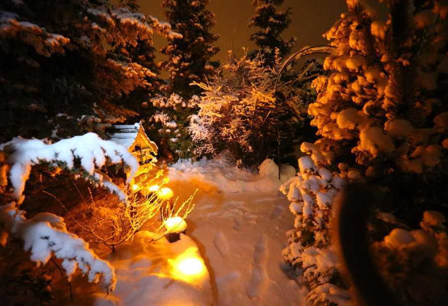 Следует продумать заранее длительность освещения территории. Если подсветка для сада будет работать круглогодично, то приборы должны быть рассчитаны на работу в различных климатических условиях.