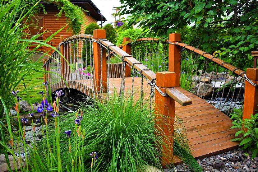 Принимая решения, учитывайте, что мост — это акцентный элемент участка, и он всегда будет обращать на себя внимание. Поэтому выбирайте такую конструкцию, которая действительно вписывается в оформление участка, и не экономьте на качестве материалов и работ.