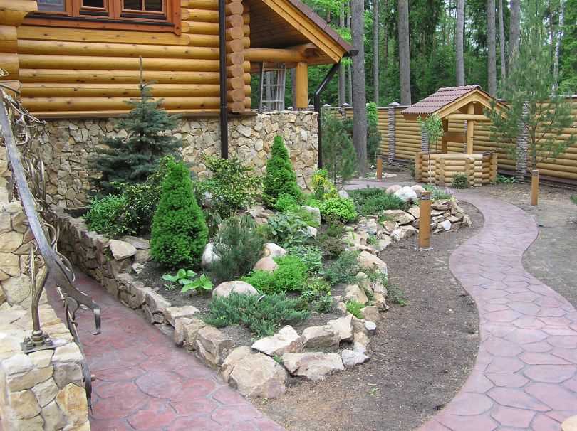 Возле сруба лучше сооружать рокарий в европейском стилеИсточник landas.ru