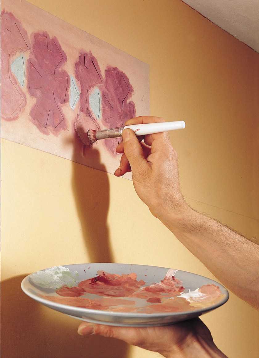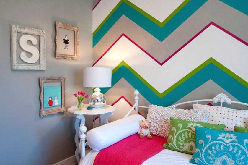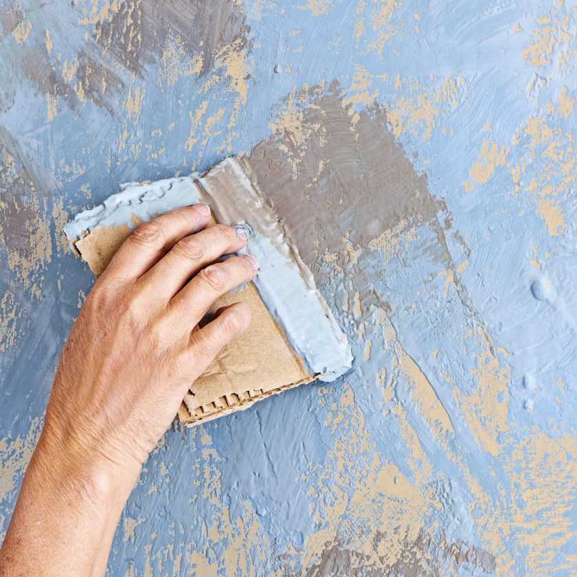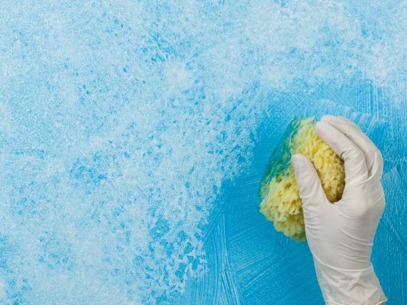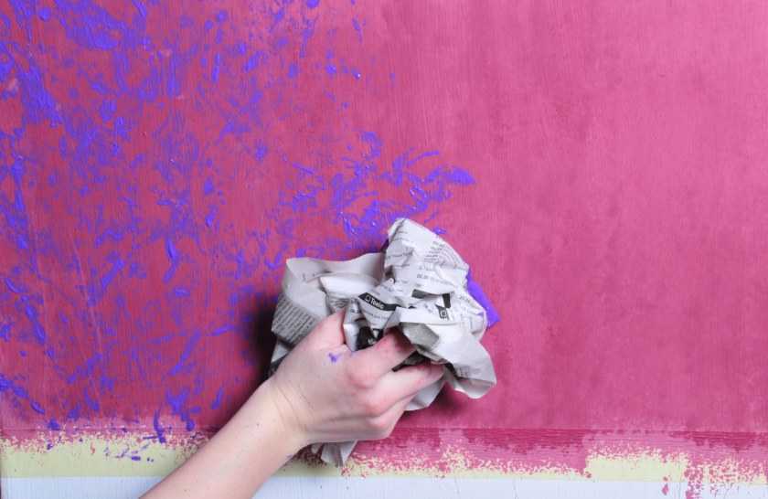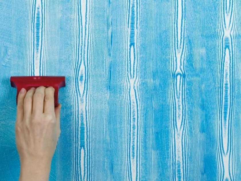 Красим стену валиком в однотонный цвет. К примеру, выбираем насыщенный бирюзовый оттенок. К свежему слою краски прикладываем метлу и проводим прутьями сверху вниз. Тонкие прутики оставляют изящные узоры на нашей стене. Эксклюзивный принт готов.