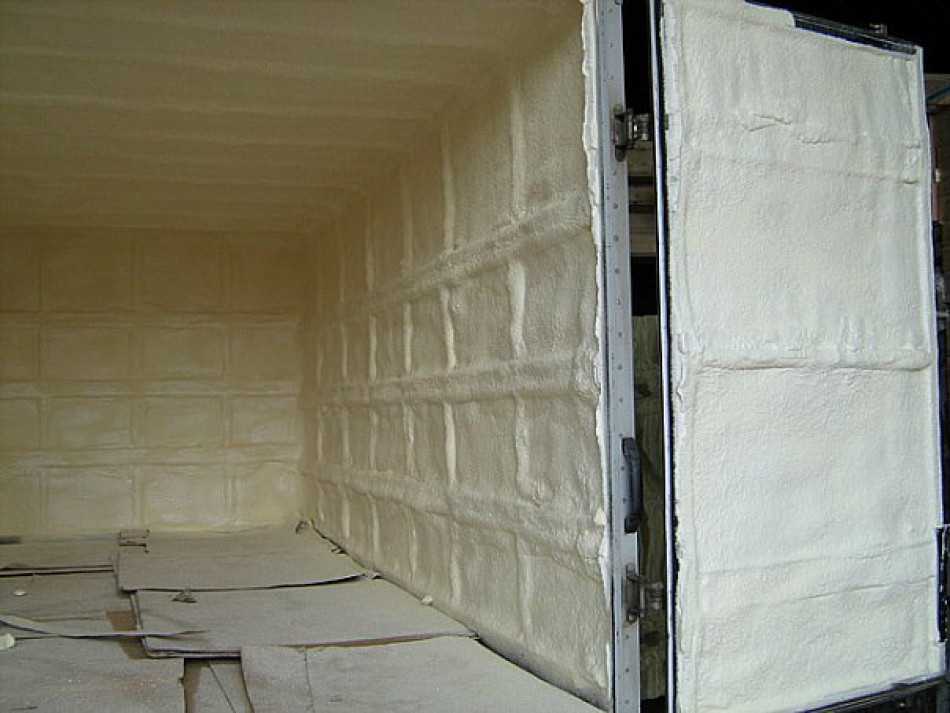 Монтировать листы пенопласта на внутренние поверхности можно с помощью клея для полистирола, монтажной пены или пластиковых дюбелей (для них понадобится понадобится обрешетка). Оптимальная толщина изоляционного слоя 50-100 мм. Стыки обязательно герметизируются монтажной пеной.