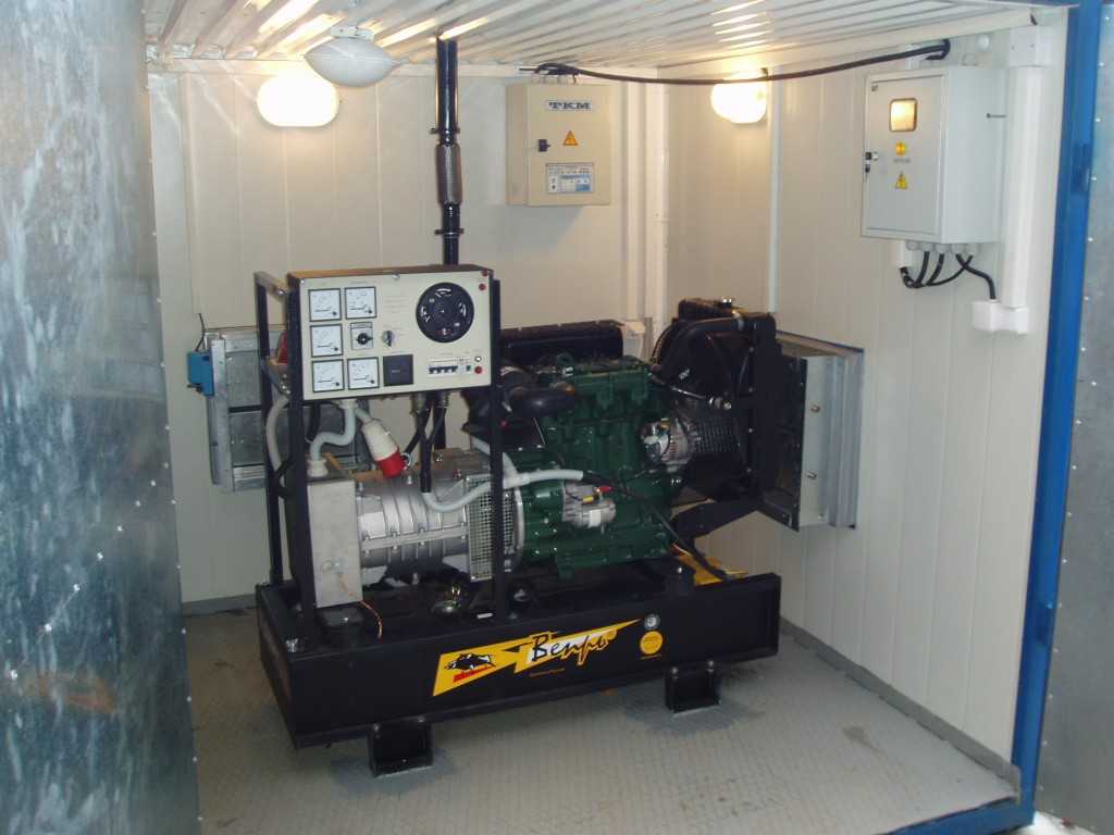В генераторе присутствует глушитель, а также вольтметр и счетчик моточасов.