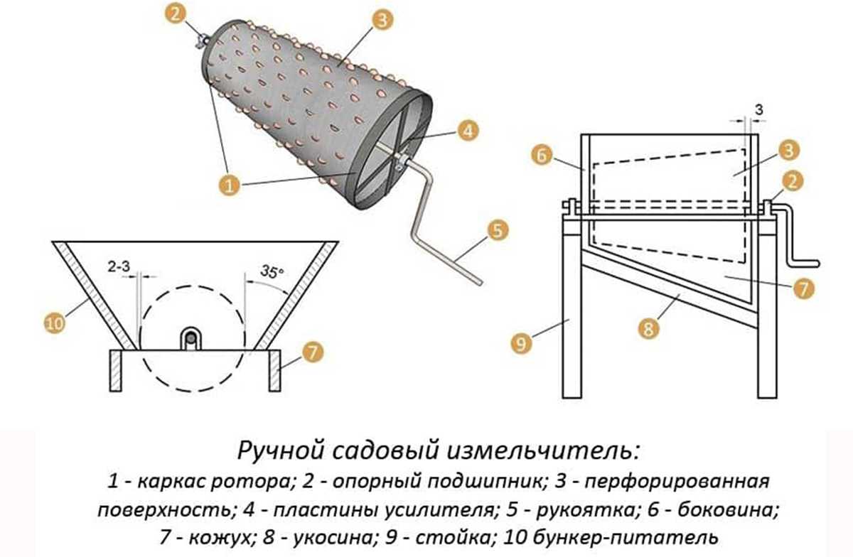 Это простейший измельчитель травы, который можно сделать собственноручно. Он представляет собой механическое устройство, похожее на мясорубку. В приемник подаются пучки травы, а на выходе она рубится секатором. Использование оборудования такого типа возможно только для переработки травы или листьев – даже тонкие ветки порубить этим ножом невозможно.