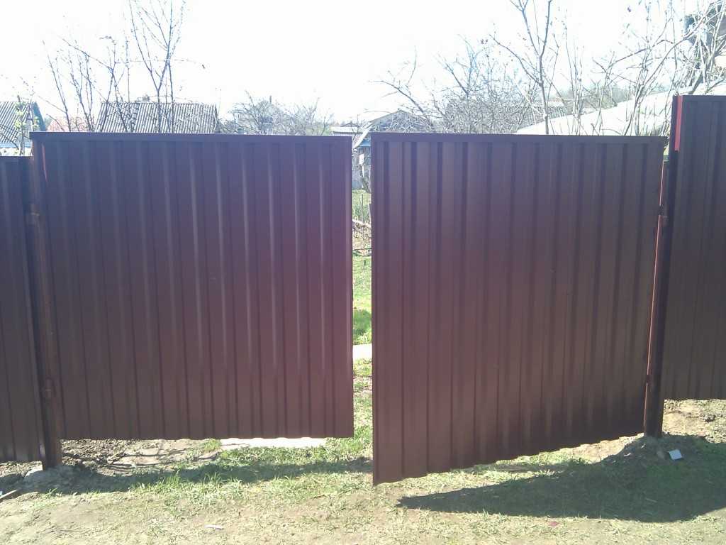 Это один из вариантов того, как можно сделать ворота из профнастила своими руками. Технология не лучшая, но и не худшая: все функционирует без проблем на протяжении уже шести лет.