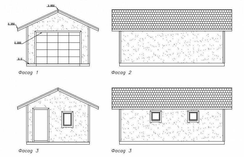 Также должен быть чертёж с указанием размеров всех каркасных элементов, расстояния между ними и способов крепления между собой. Также в чертеже указывается вид и размеры панелей стеновой обшивки, и способы её крепления к стойкам каркаса. Оговаривается материал размер кровельных листов, а также шаг-расстояние кровельных лагов. Правильно составленный чертёж со всем размерами может использоваться в качестве инструкции к строительству гаража.