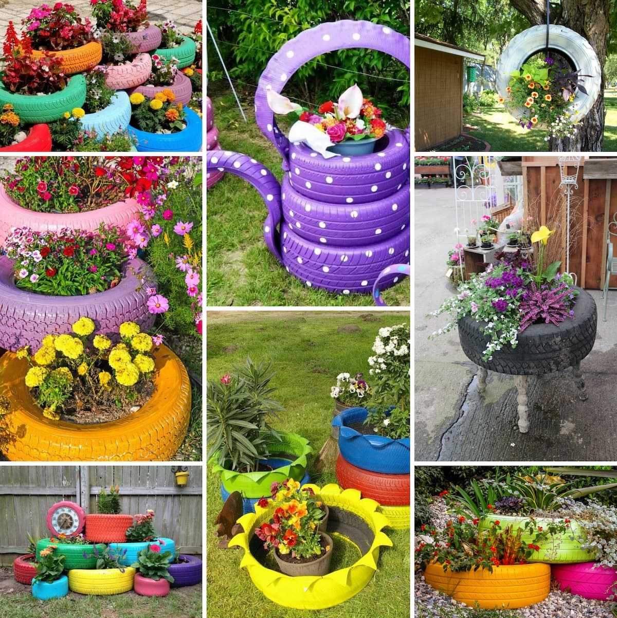 Совет! Покрышки для усиления декоративности красят и расписывают. Устанавливая друг на друга при помощи дополнительных деталей, делают клумбы в форме чайников, чашек. Вдохновение и новые идеи помогут сделать любой сад ярким и оригинальным.