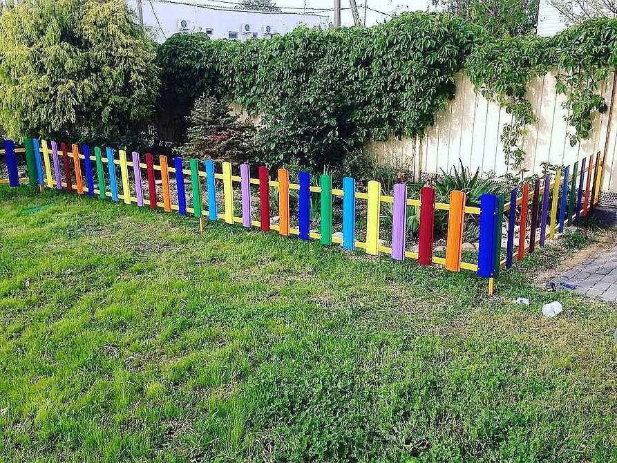 Из пластиковых бутылок. Недорогой и практичный забор разнообразного оттенка и конфигурации быстро сооружается из пластиковых бутылок. Их можно в неглубокую траншею по периметру цветника поставить вверх донышком или горлышком. Для надежности тару заполняют песком или землей. Интересное невысокое ограждение получают, если бутылки со срезанными горлышками вставляют друг в друга и кладут горизонтально, слегка заглубив в почву.