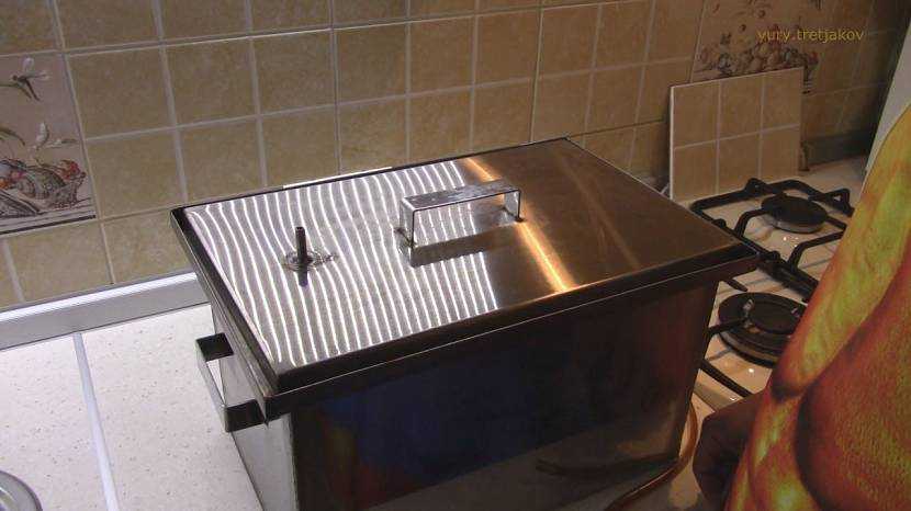 Для оборудования самой простой коптильни не потребуется даже специальный резервуар. Все, что нужно – газовая плита, вытяжка над ней, стальная тарелка или банка из-под консервов.