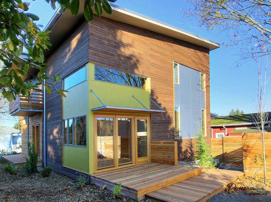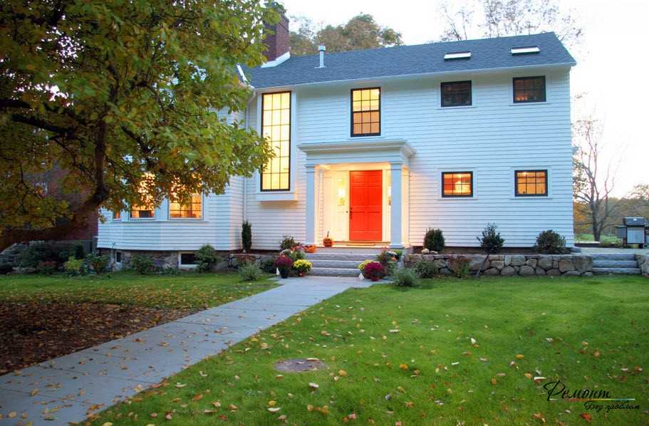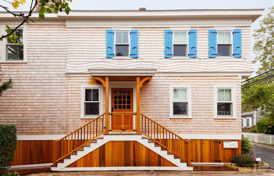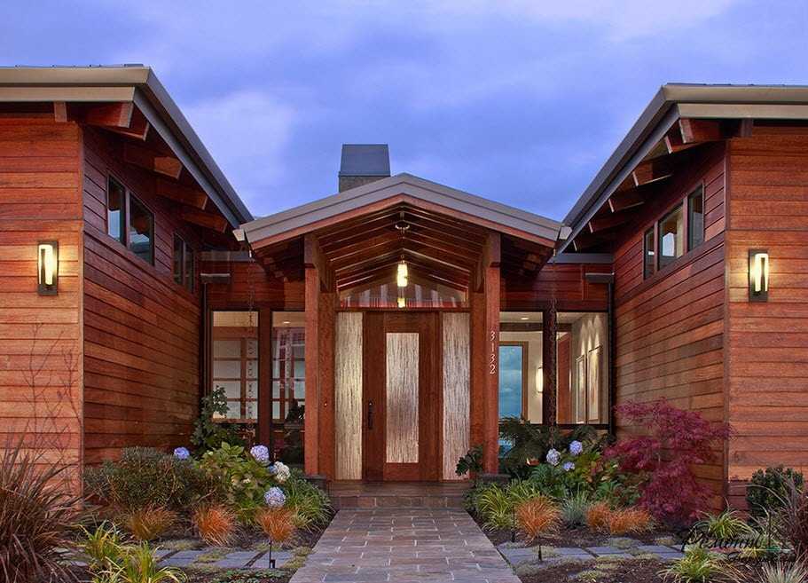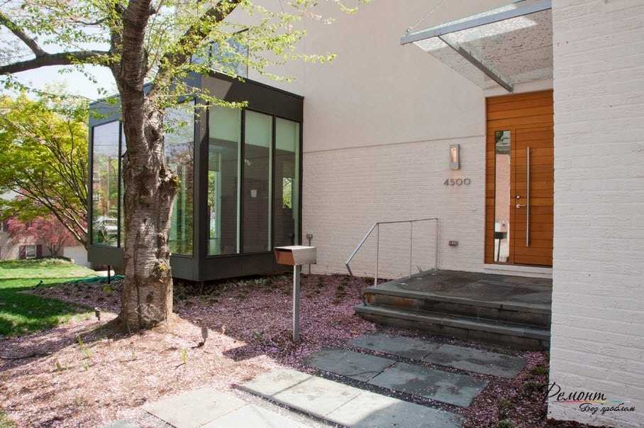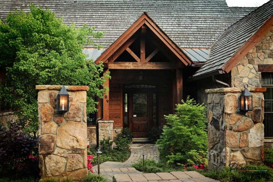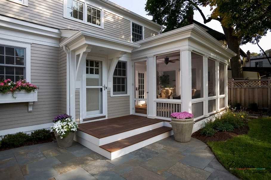 - Гармоничное сочетание с деревянным крыльцом в деревянном доме или отделанными под дерево.