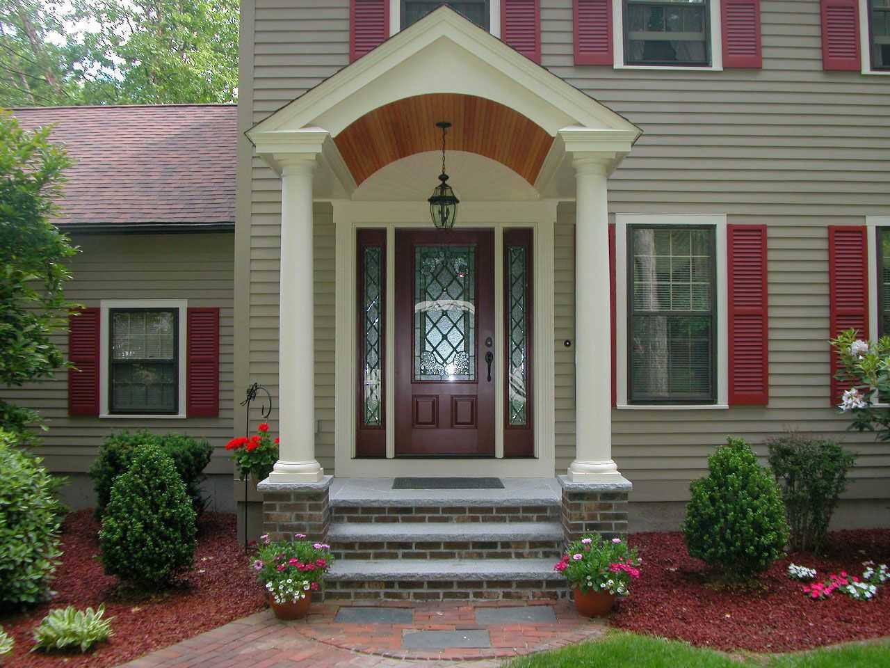 Навес над входом, точнее, его несущие части, чаще выполняются из таких материалов: