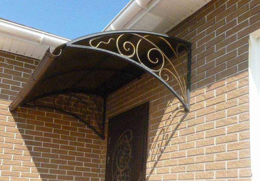Лучшим дизайнерским решением станет козырек, каркас которого выполнен из ковки. Он будет служить достойным украшением дома. Однако такая конструкция обойдется вам в копеечку. Кованный козырек можно совмещать с такими кровельными материалами, как поликарбонат, черепица и даже пластик.