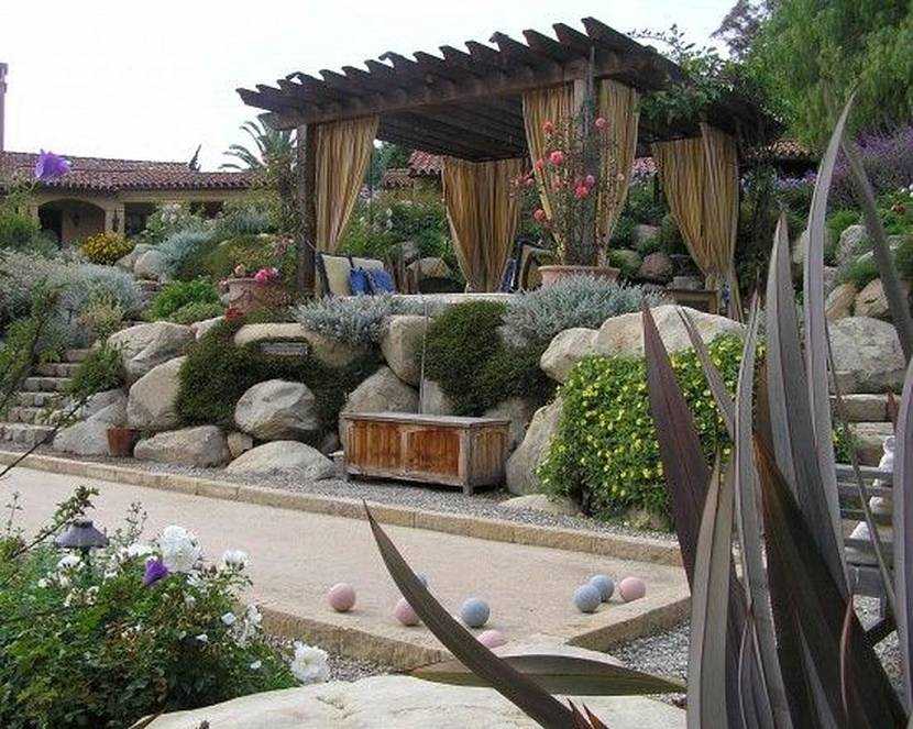Удачный облик крытой конструкции побуждает к преображению всего дачного участка. Но лучше начинать с проекта ландшафтного дизайна:
