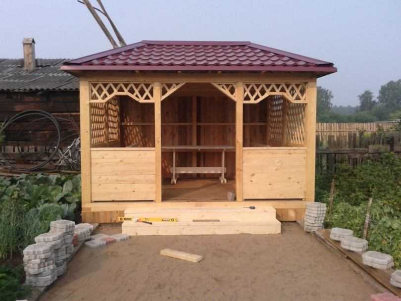 Этапы строительства деревянной беседки можно разделить на несколько основных пунктов: