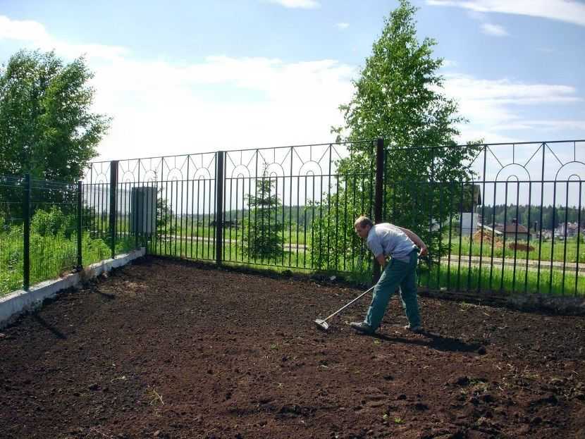 Тяжелую почву следует разбавить песком и верхним слоем почвы. После завершения подготовительных работ следует выровнять почву и слегка утрамбовать при помощи ручного катка.