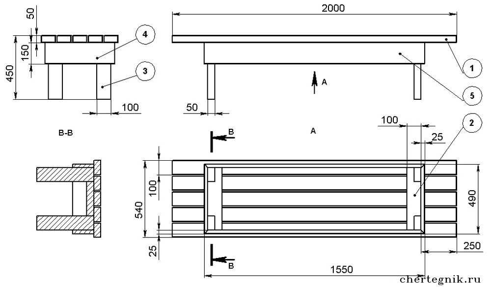 Лавка для бани. Чертеж для изготовления своими руками