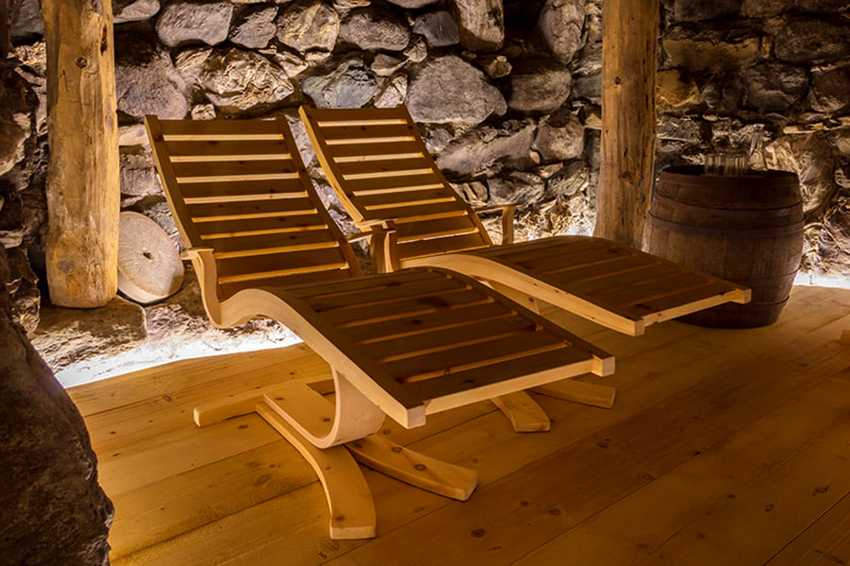 - шезлонги или лежаки — выполняют роль кушеток, на которых можно отдохнуть после парилки;