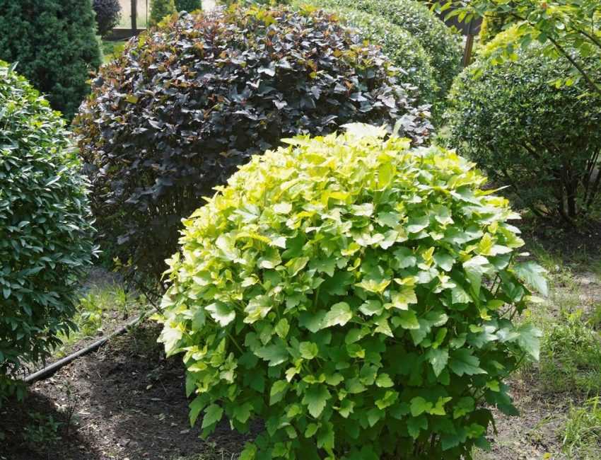 Декоративные особенности: Сорта кустарника делятся на краснолиственные и желтолиственные. Например, листва пузыреплодника «Диабло» окрашена в темно-красный оттенок, а «Дартс Голд» – в желто-огненную.